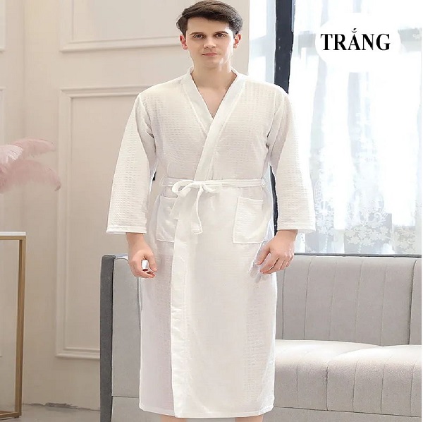 Áo choàng tắm kiểu kimono sẽ phù hợp với thắt lưng bản rộng. Về màu sắc, thường sử dụng tông màu trắng,, xám, vàng. nâu đây là tông màu chủ đạo được các khách sạn, spa, resort sử dụng.