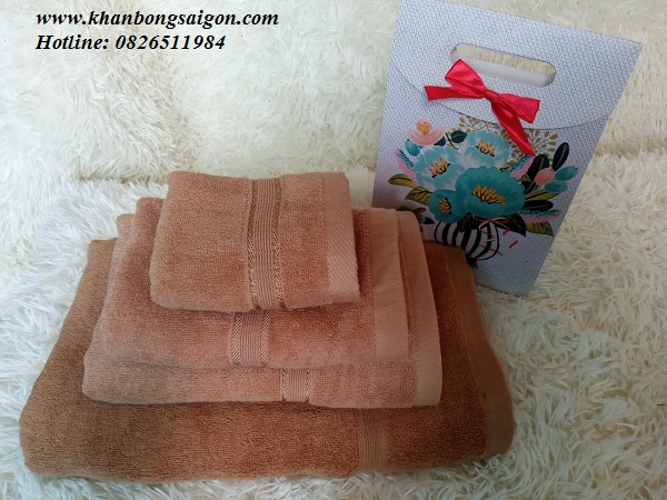 Ảnh: Bộ khăn tắm cotton màu nâu