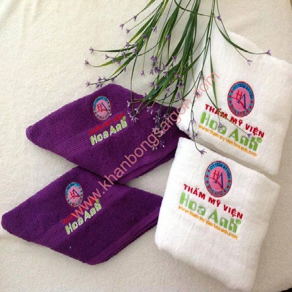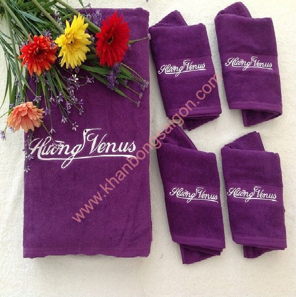 Ảnh: Bộ 3 Khăn Spa cotton tím thêu logo