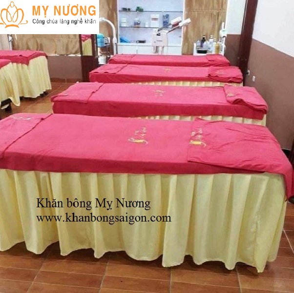 - Nhận Thêu logo lên Drap giường spa, Đồng phục Spa