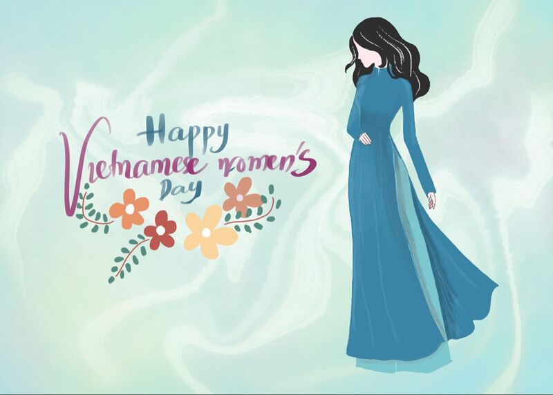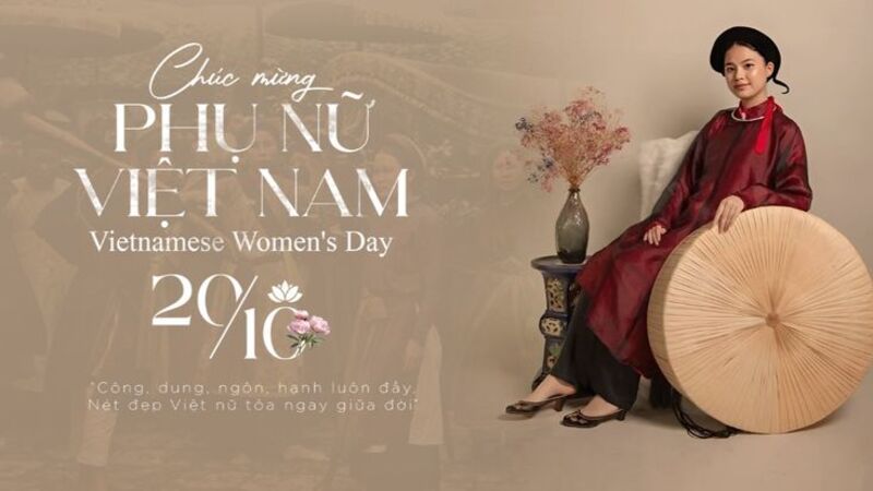 - Câu chúc trên thiết kế: Chúc mừng Ngày Phụ Nữ Việt Nam 20/10, Happy Vietnamese Women’s Day.