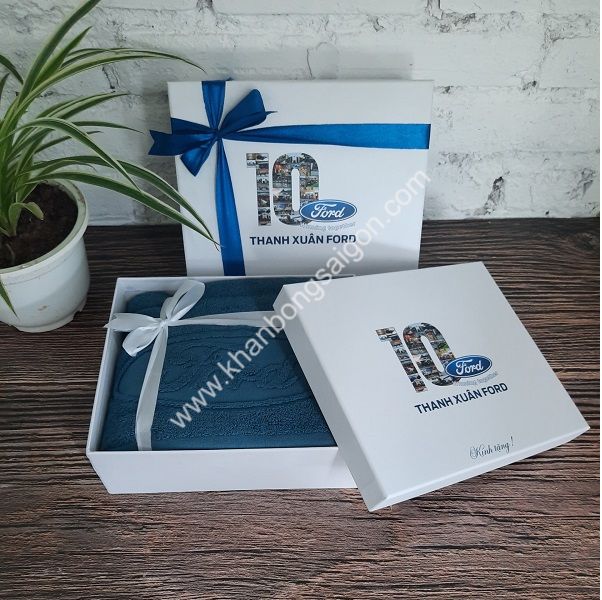 Khăn bông quà tặng cao cấp dệt logo hộp giấy cao cấp