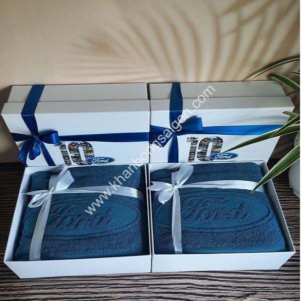 Khăn bông quà tặng cao cấp dệt logo hộp giấy cao cấp