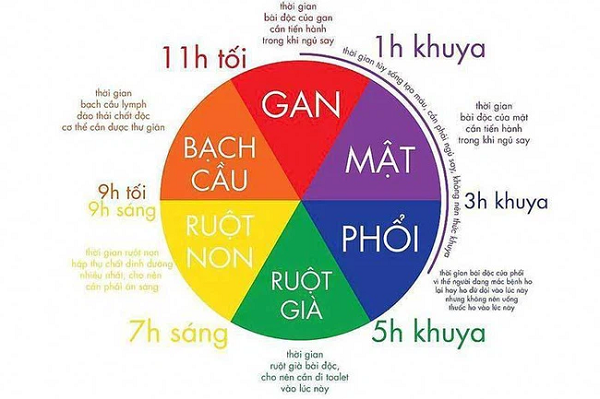Từ 23 giờ đến 03 giờ (giờ Tý và giờ Sửu): Đây là thời điểm gan hoạt động mạnh nhất. Bạn phải đi ngủ trước 10 giờ tối, im lặng không làm gì cả, kể cả nói chuyện cũng không, giấc ngủ sẽ đến vào khoảng 11 giờ tối. Lúc đó mật ở gan tiết vào máu, loại các chất độc, làm huyết dịch tươi hơn. Những người có giờ ngủ khoa học như trên thì sẽ không mắc bệnh viêm gan hay sỏi ở độ tuổi 100.