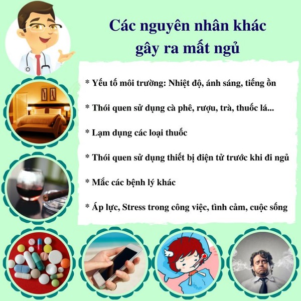 Một số nguyên nhân khác cũng có thể dẫn đến chứng mất ngủ dai dẳng, chẳng hạn như lối sống không lành mạnh, dùng thuốc dị ứng, trầm cảm, hen suyễn,... hoặc bệnh Parkinson, viêm khớp, đau thần kinh tọa, rối loạn lưỡng cực.
