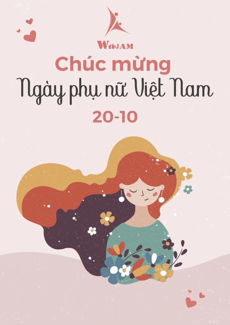 - Bố cục: Nền hồng pastel, hình cách điệu người phụ nữ Việt Nam mặc áo dài, đội nón lá. Chữ “Happy Vietnamese Women’s Day 20/10” và có thêm hoa hồng điểm xuyến.