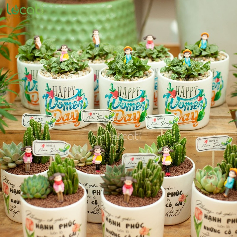 Một số loại cây phù hợp để chọn làm quà 8/3 bao gồm cây kim tiền, cây sen đá, cây lưỡi hổ,... Đây là những loại cây không yêu cầu quy trình chăm sóc phức tạp, có khả năng thích nghi cực tốt dưới môi trường máy lạnh. Doanh nghiệp có thể chọn những chậu cây có thiết kế tốt giản và gắn kèm thẻ chúc mừng 8/3 nhỏ gọn.